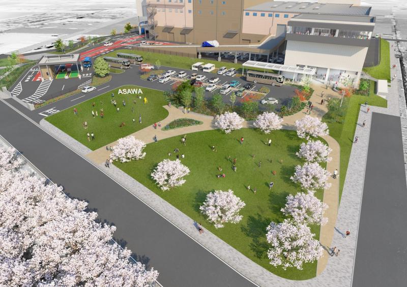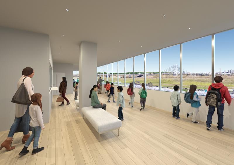 令和12年度の稼働開始を目指して、現在、新しいごみ処理施設の設計を進めています。この施設では、屋外と屋内(管理棟4階)に市民開放スペースの設置を計画しています。